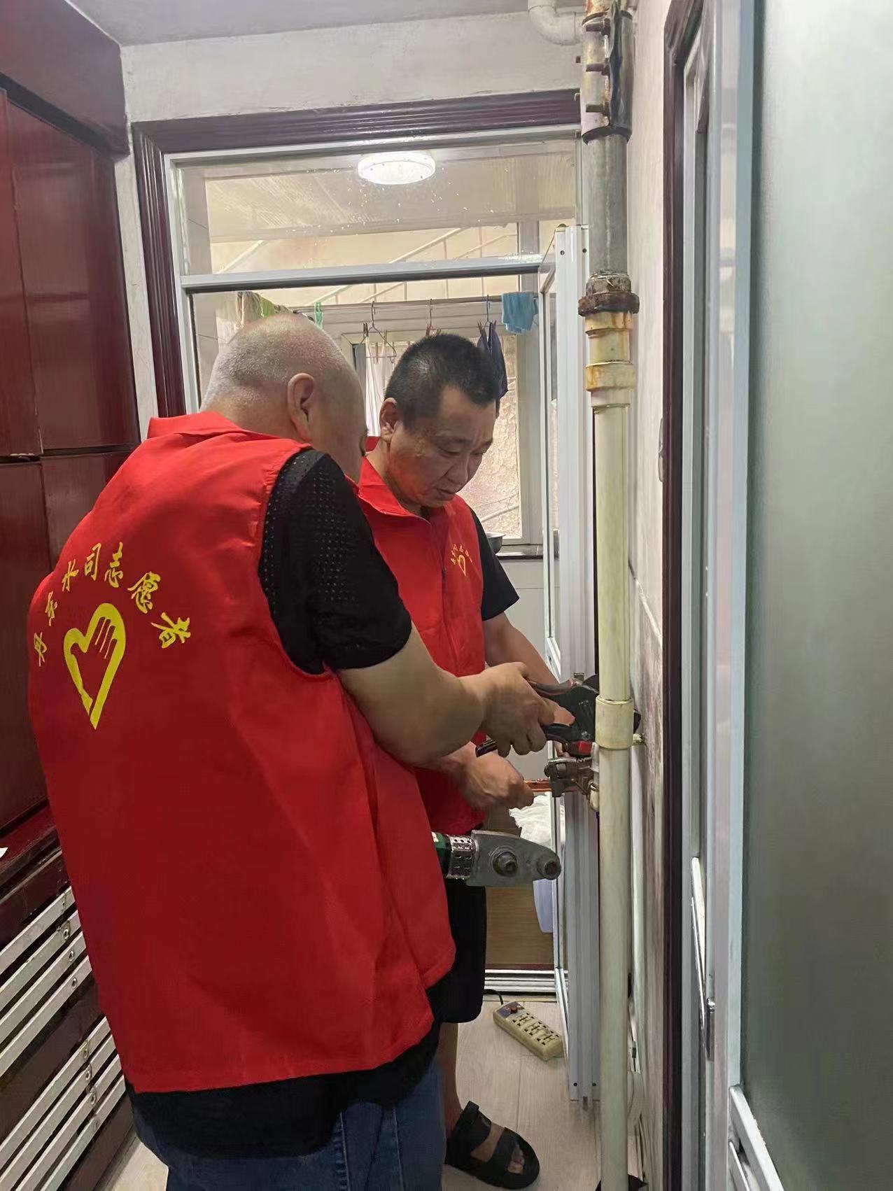 同日,元寶處黨支部組織黨員志愿者來到砂輪廠小區(qū)為社區(qū)居民供水設(shè)施進行義務(wù)維修。